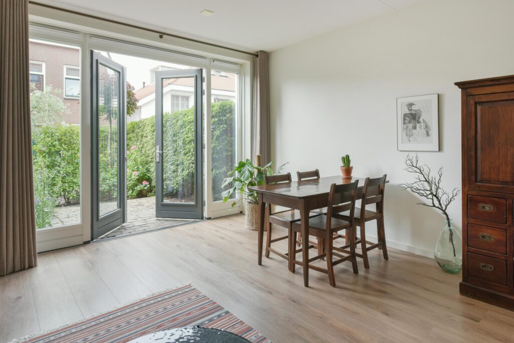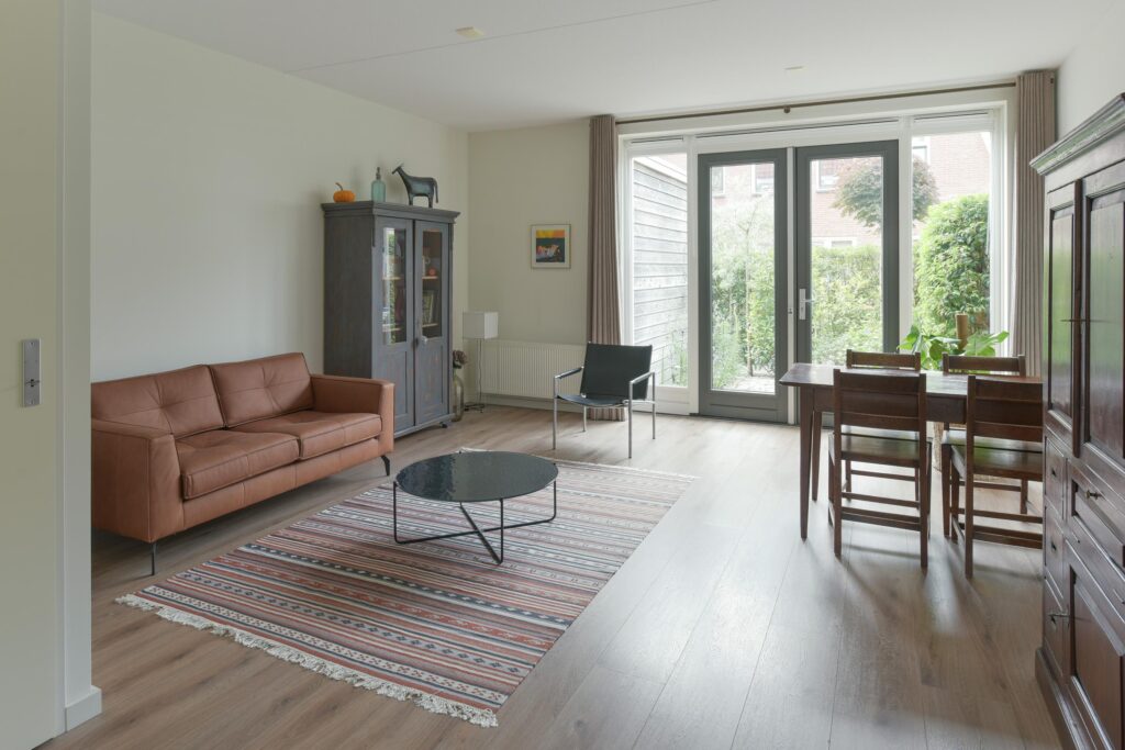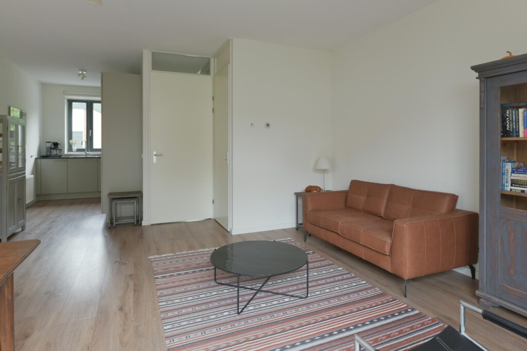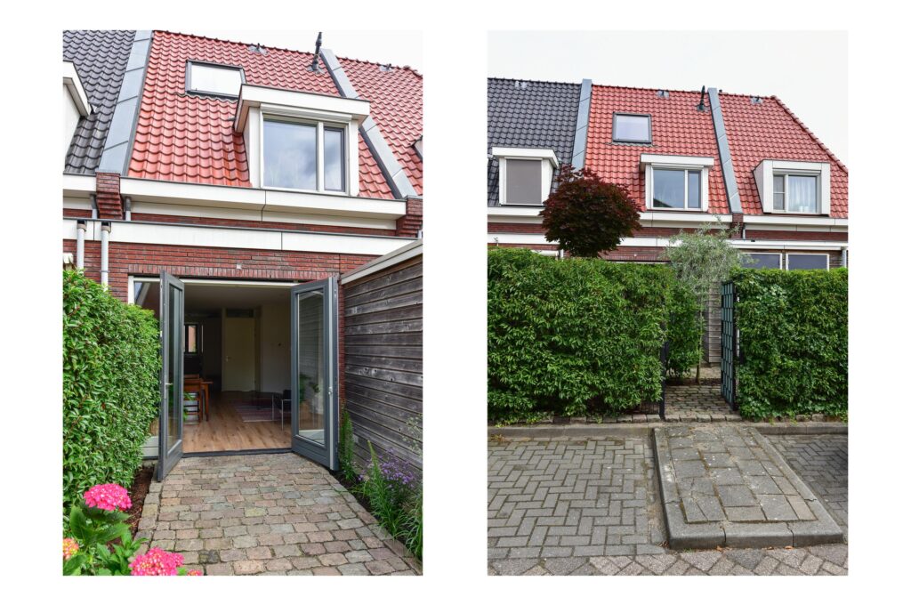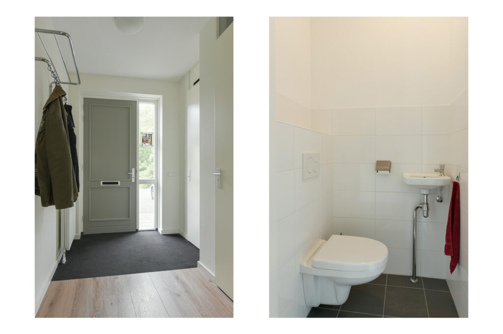 Eigen parkeerplaats direct voor de deur, toegang tot de woning, ruime hal met garderobe, meterkast, toilet, trapopgang, woonkamer met openslaande deuren naar de achtertuin en open keuken aan de voorzijde.