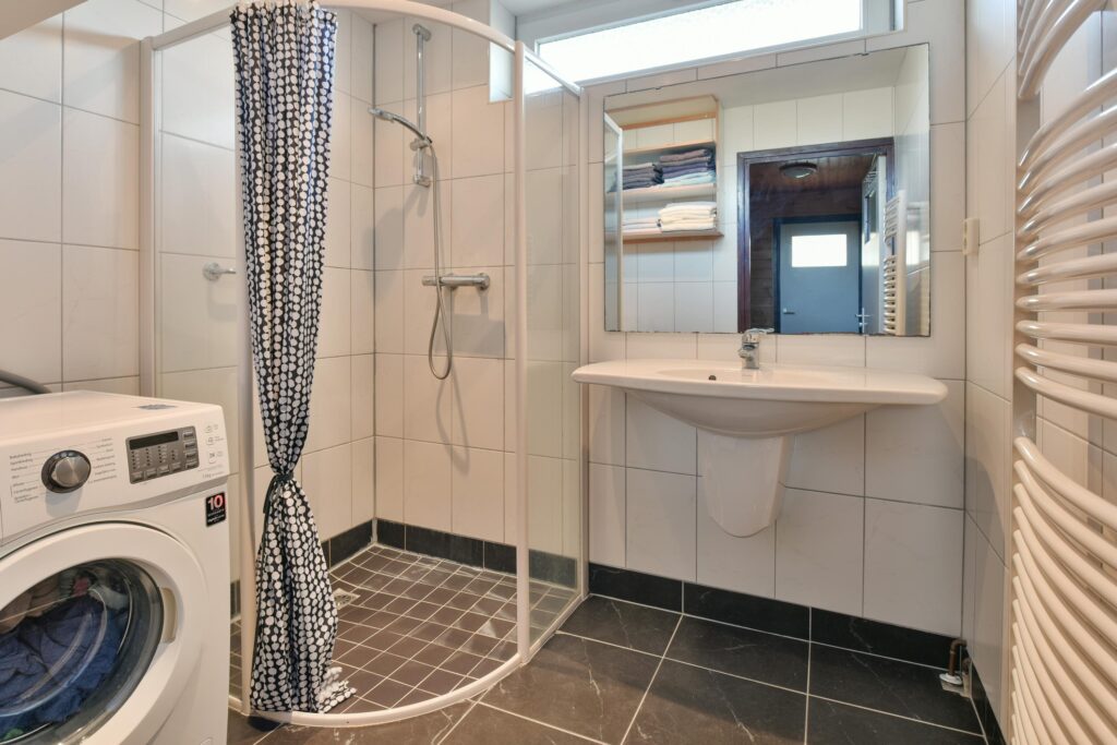 - Nette badkamer met wastafel, douche en aansluiting wasmachine;