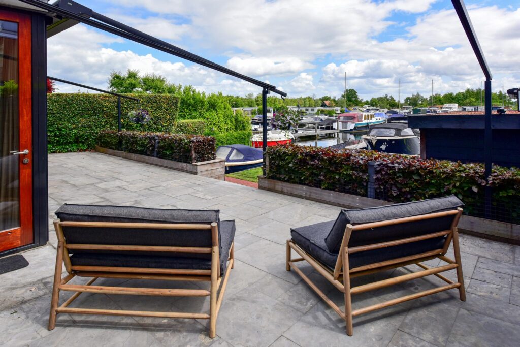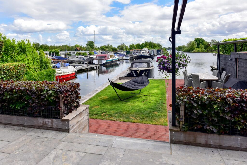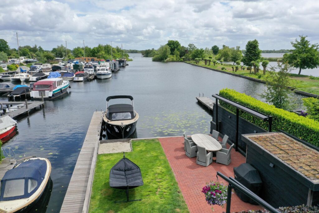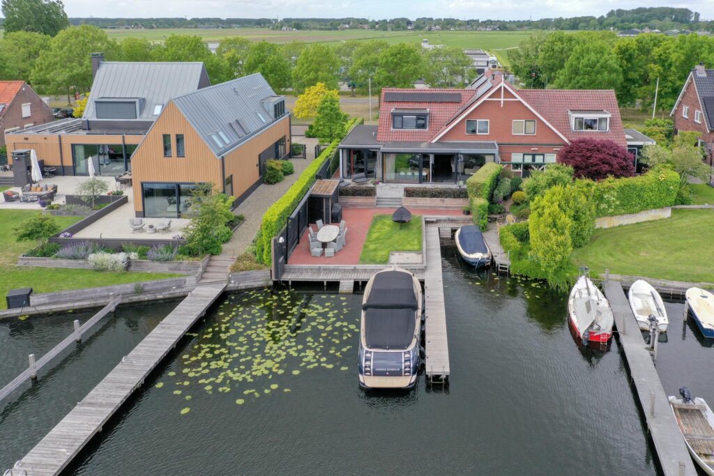 - Vrij uitzicht over het water met eigen aanlegsteiger;