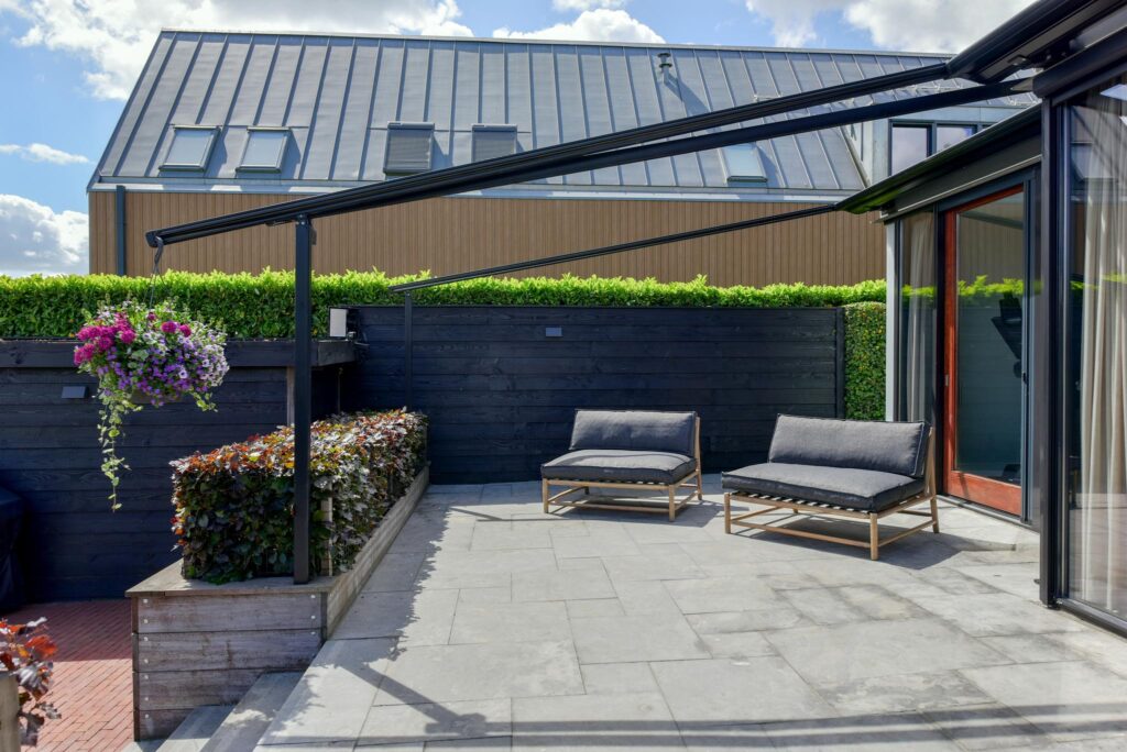 - Elektrische screens en zonneschermen aan de achterzijde;