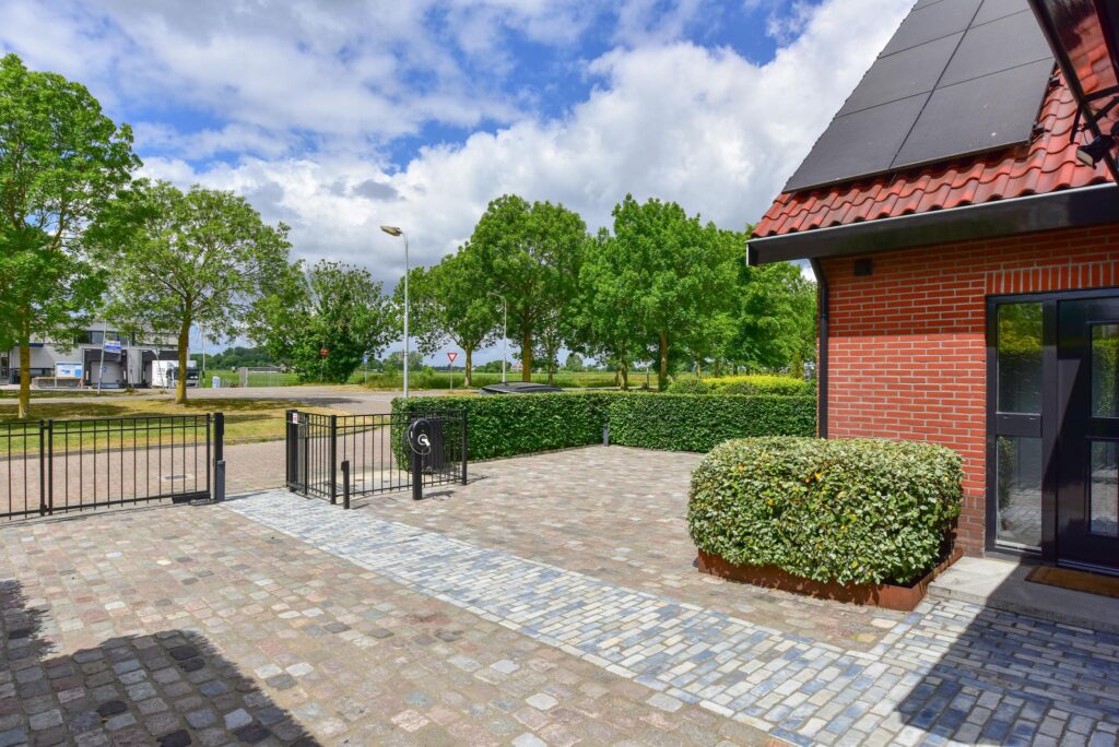 Door middel van het besloten en beveiligd toegangshek is het perceel te betreden. Parkeergelegenheid voor meerdere personenauto's alsmede twee laadpunten voor het laden van elektrische auto's.