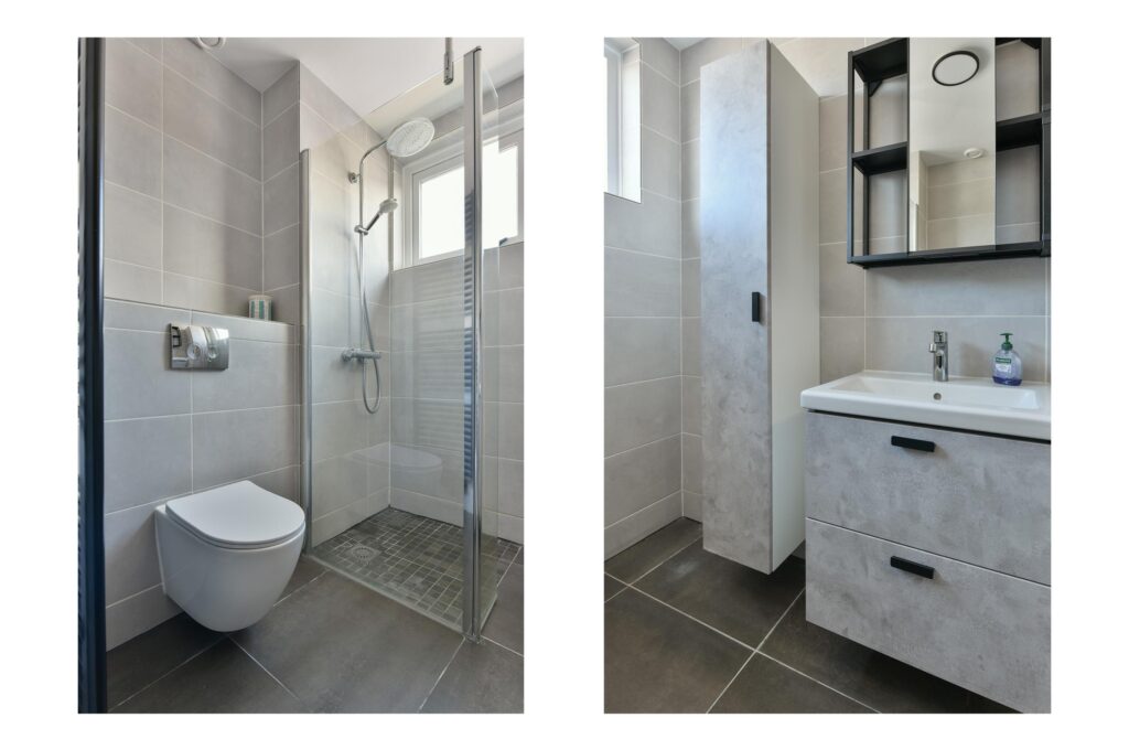 - Badkamer met wastafel, inloopdouche en tweede toilet;