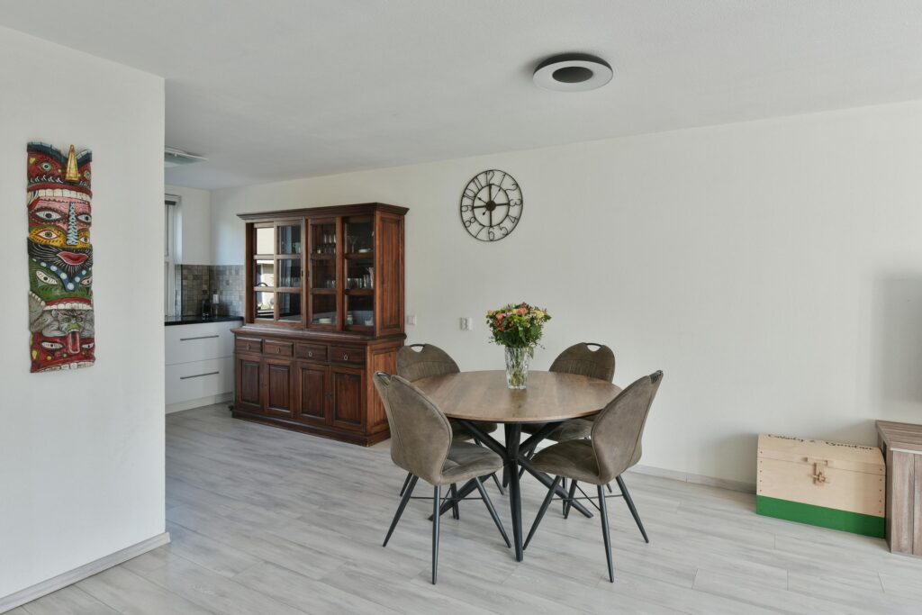 Ruime woonkamer aan de achterzijde met openslaande deuren naar de achtertuin. De begane grond vloer is voorzien van een nette laminaatvloer.