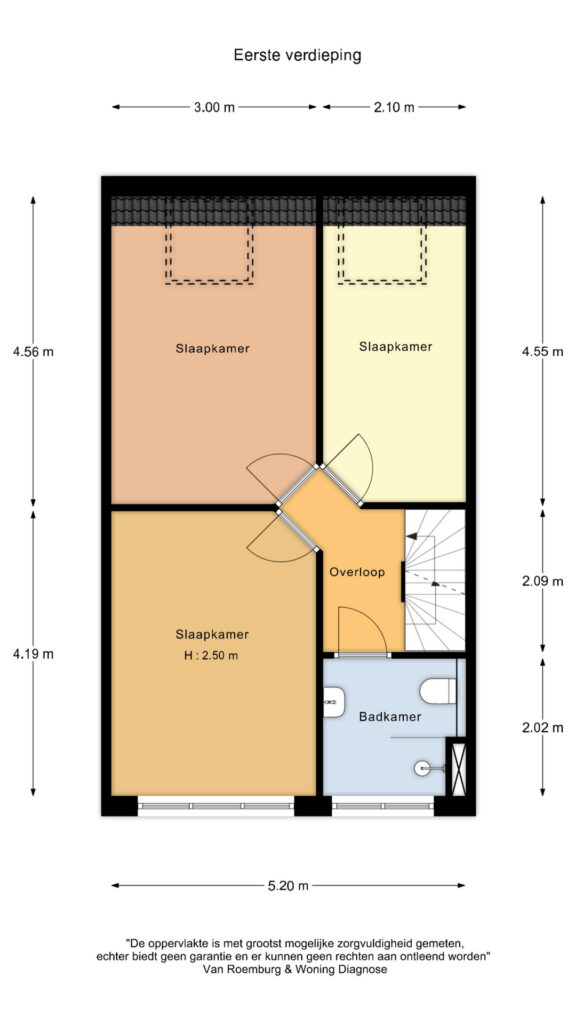 Overloop, badkamer met wastafel, inloopdouche en een toilet. Drie, in grootte varierënde, slaapkamers waar de mogelijkheid bestaat om de slaapkamers aan de achterzijde te optimaliseren door het plaatsen van een dakkapel.