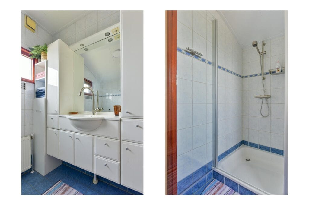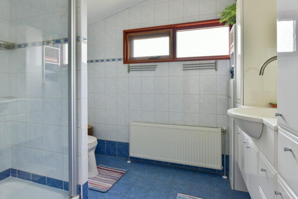 - Badkamer met wastafelmeubel, inloopdouche en toilet;