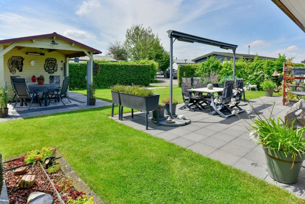 Verzorgde tuin met aangenaam terras en een overkapping alwaar ook een fijn terras is gecreëerd. Ideaal op de warme dagen om lekker buiten te zitten maar toch uit de zon.