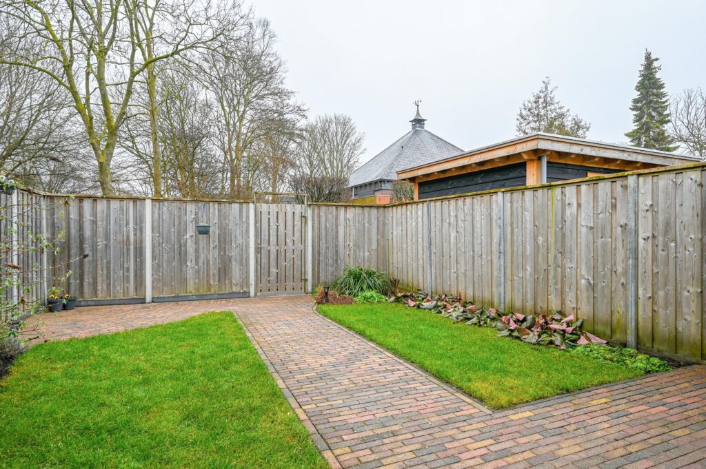 - Verzorgde voortuin en nieuw aangelegde (2022) diepe achtertuin van 19 meter met achterom en stenen schuur, gelegen op het oosten;
