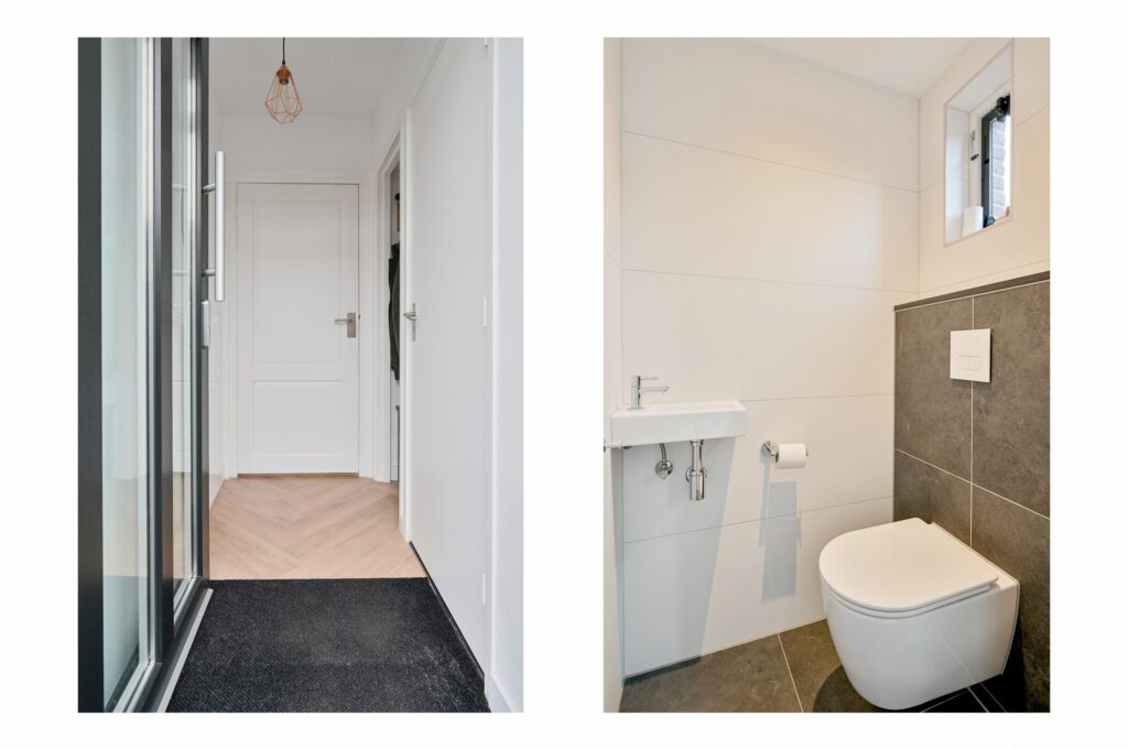 Entree, gang met meterkast, separaat toilet met fontein en garderobe.
