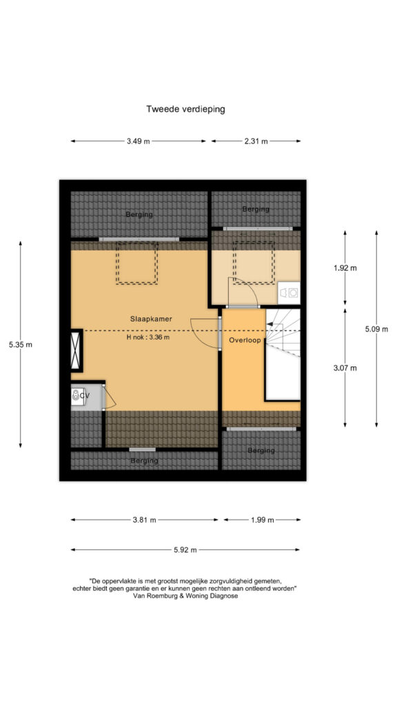 - Vierde slaapkamer op de tweede verdieping met opstelling c.v.-installatie;