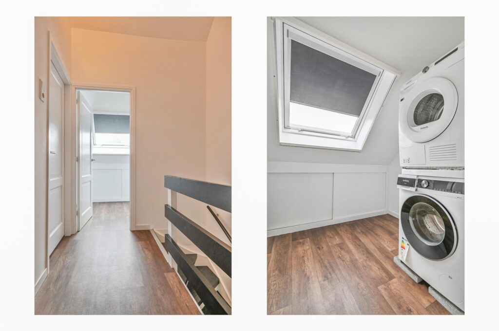 Voorzolder en een separate wasruimte met groot Velux uitzetraam, opstelling voor de wasmachine/droger. Vierde grote slaapkamer met veel berg-/kastruimte en een ruimte voor opstelling c.v.-installatie (Nefit).