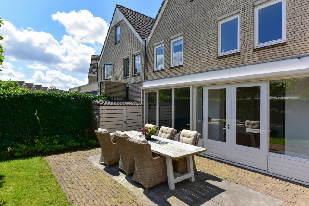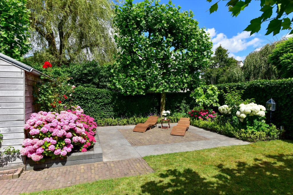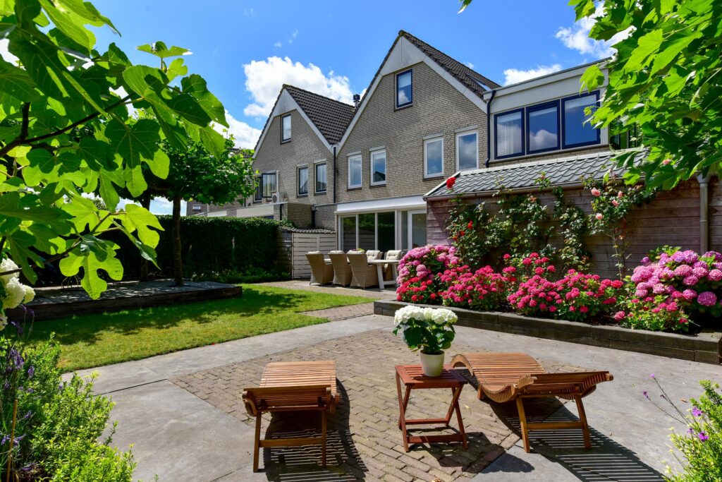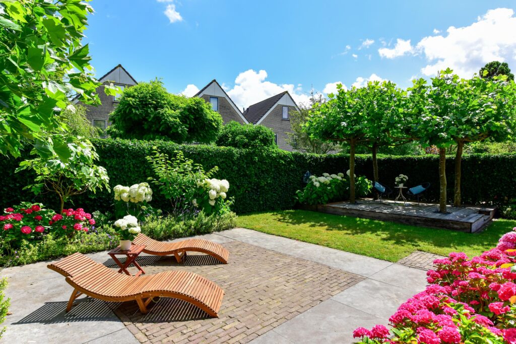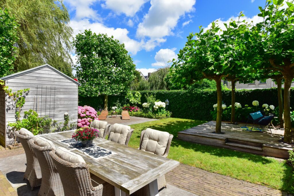 De royale achtertuin met achterom biedt veel rust, privacy en is gelegen op het oosten.