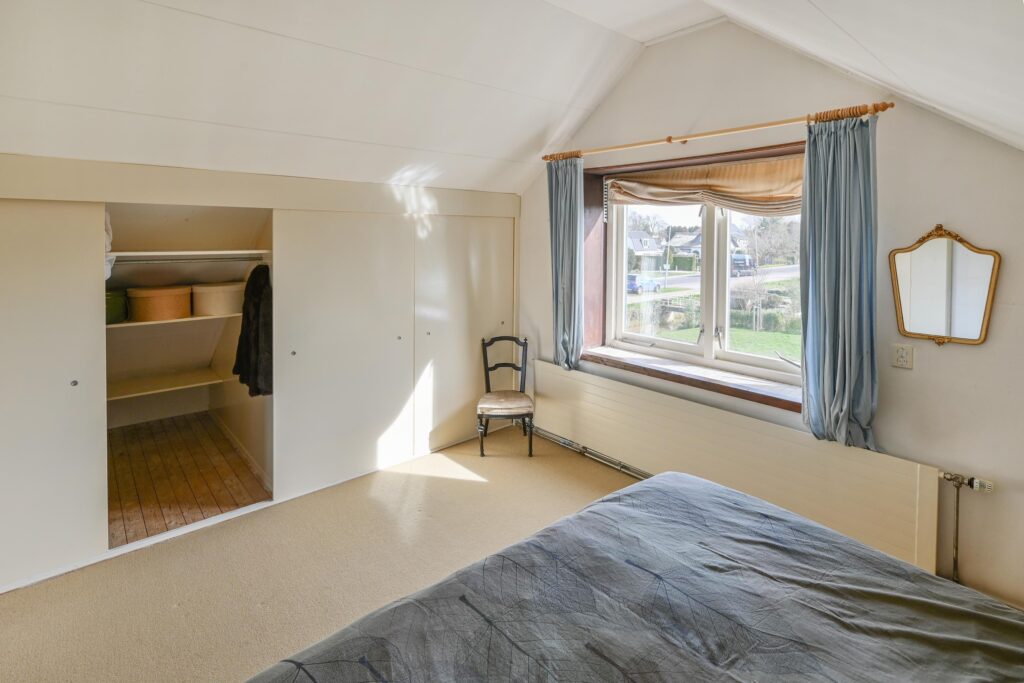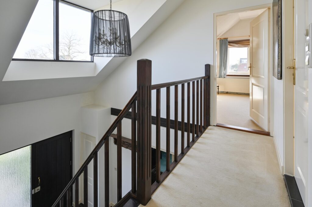Ruime overloop met toegang tot de twee slaapkamers. Beide slaapkamers zijn goed van formaat met veel bergruimte achter de knieschotten.