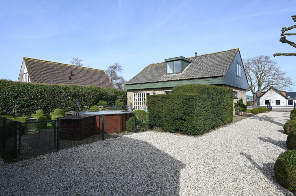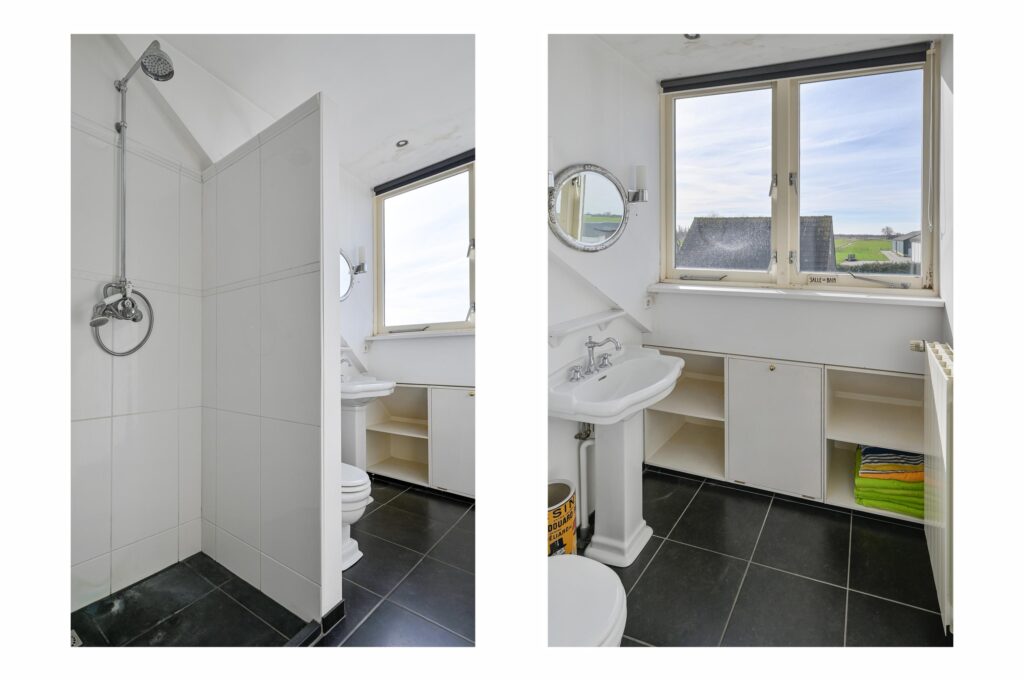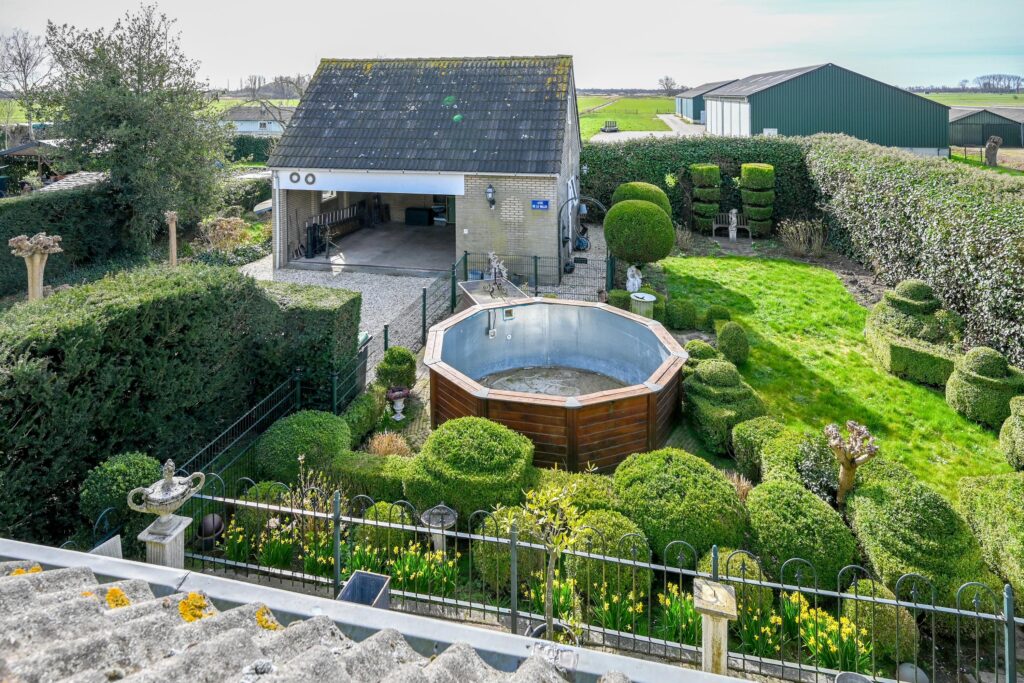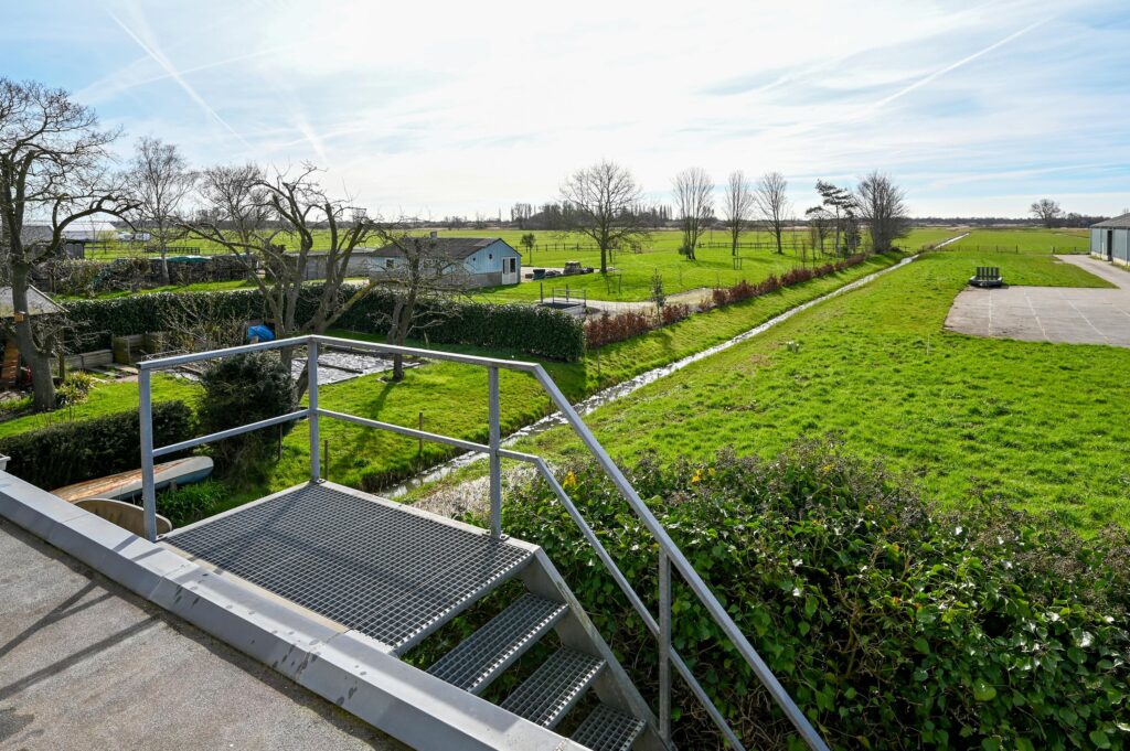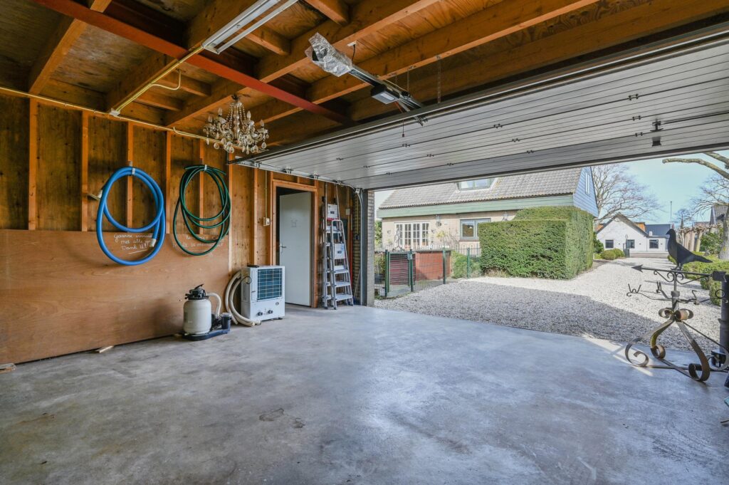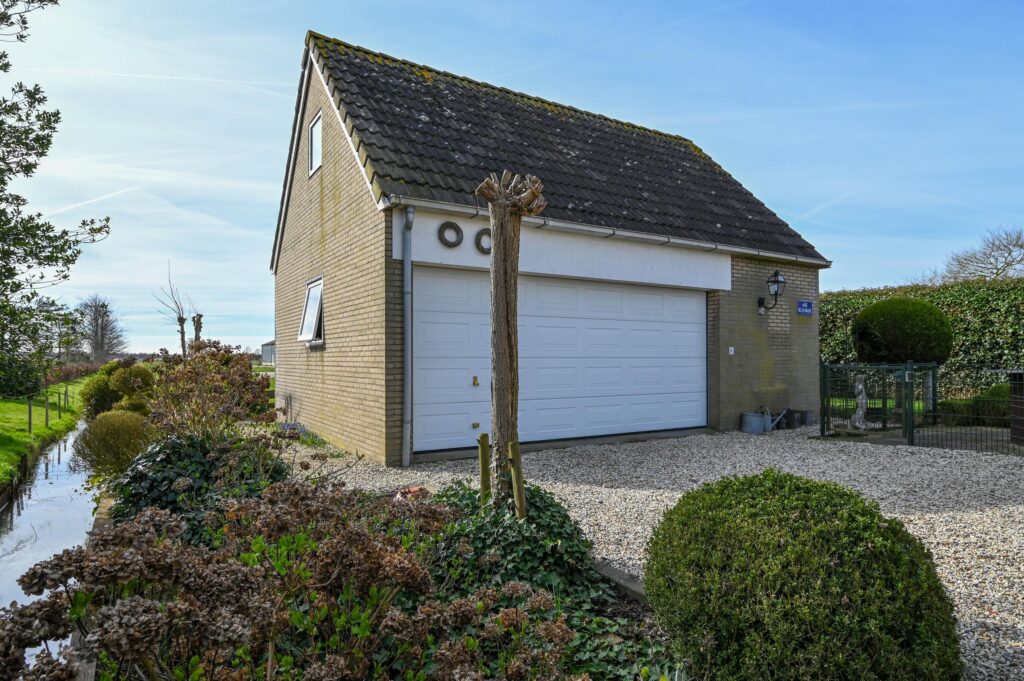 Royale dubbele garage met elektrische roldeur met verdiepingsvloer. Hier is een voormalige duiventil met waanzinnig uitzicht over de polder. Er is eveneens een afzonderlijke berging in de garage aanwezig.