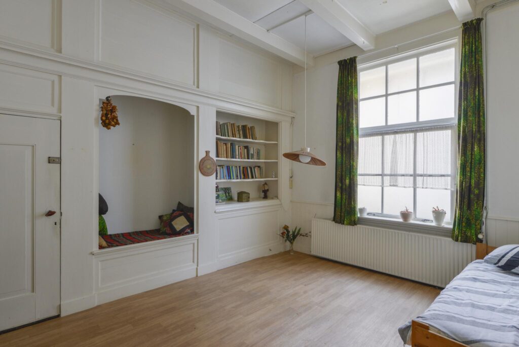 Toegang naar de royale voorkamer met schouw en ruime kasten.