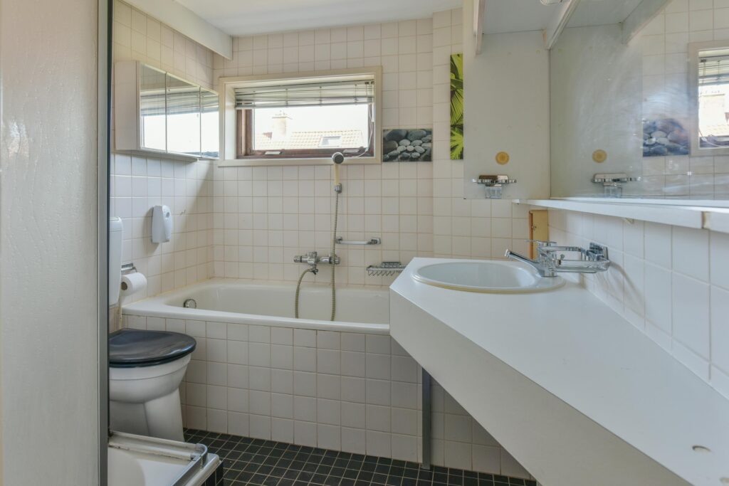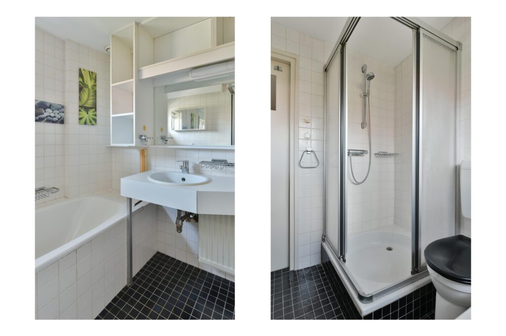 - Badkamer met douche, ligbad, wastafel en een toilet;