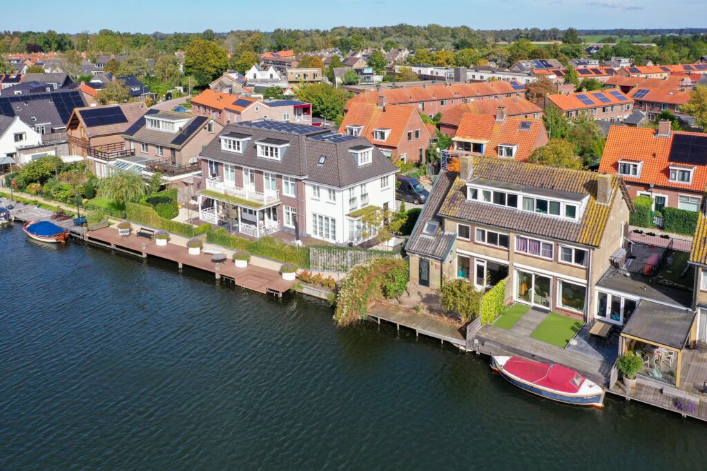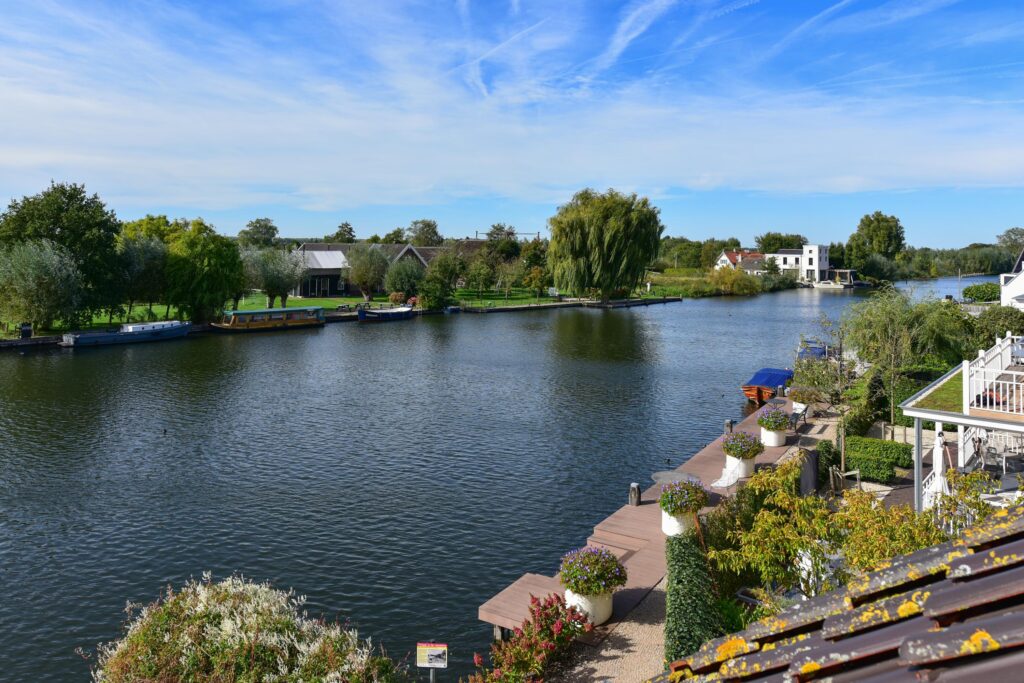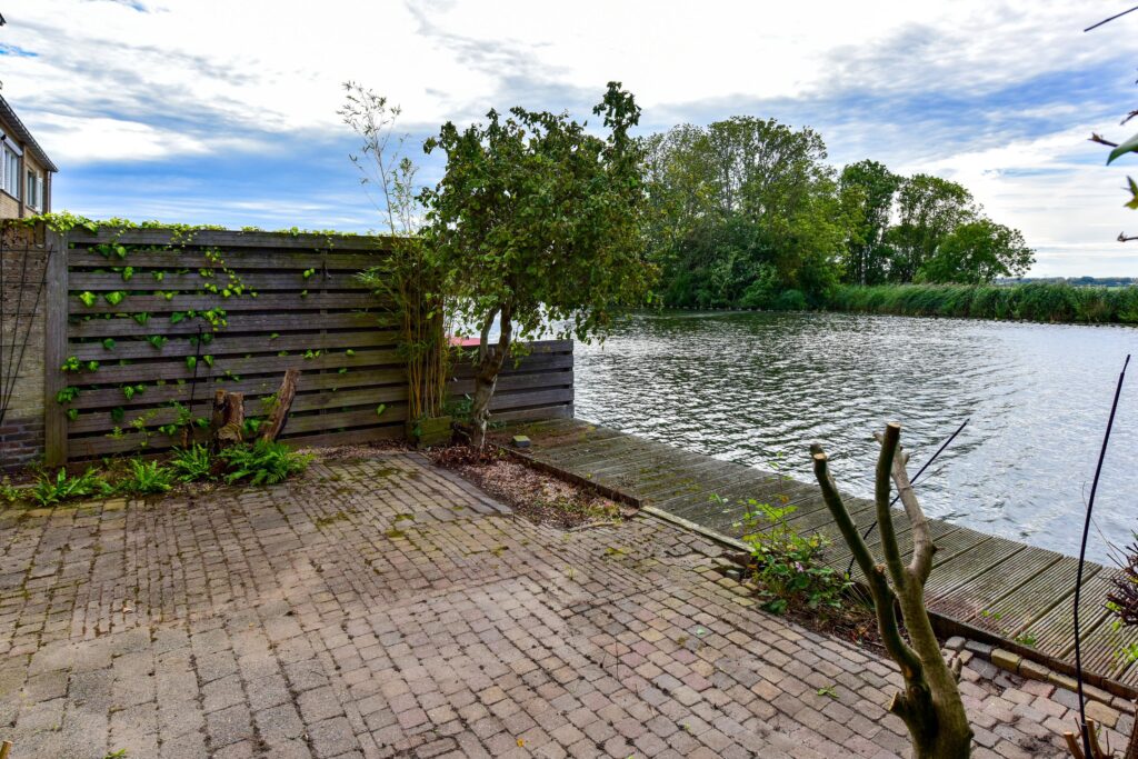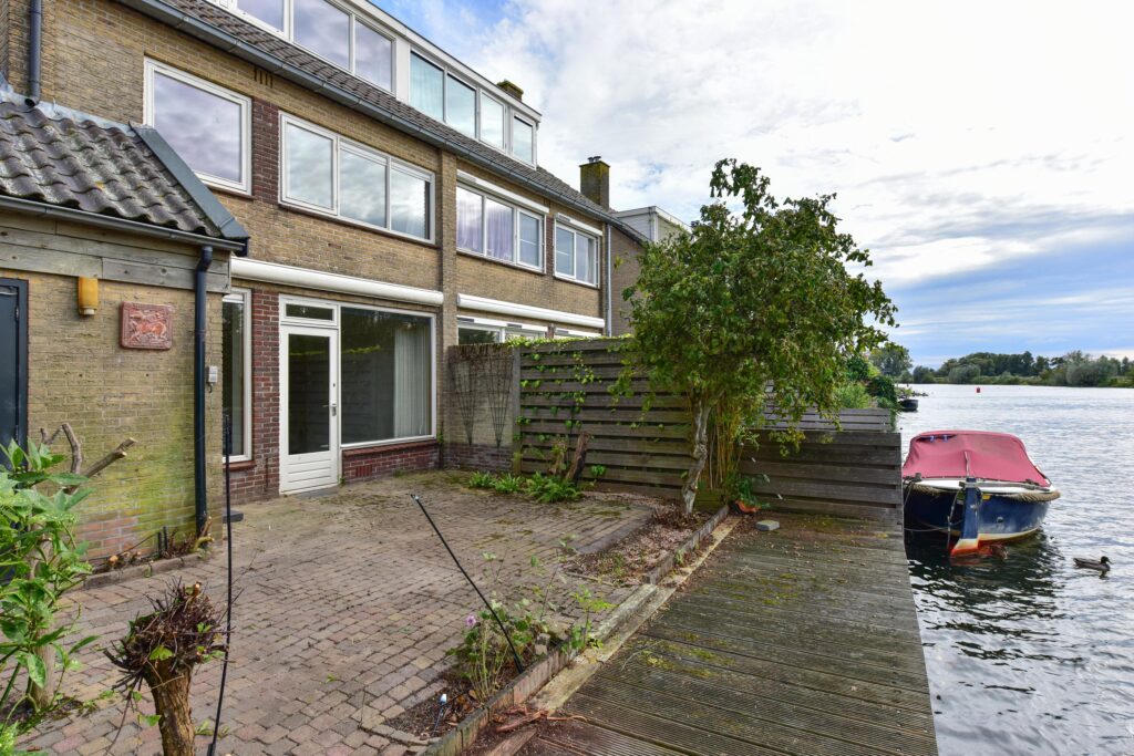 De achtertuin is direct aan de Vecht gelegen (west/zonsondergang) heeft een eigen aanlegsteiger; u stapt dus zo vanuit de tuin in uw boot!